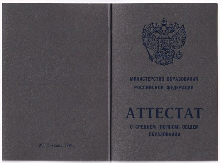 Аттестат школы за 11 классов, доступные с годами выдачи с 1994 по 2006. Используем оригинальные бланки ГОЗНАК с подписями и печатями, полная комплектация включает корочку, бланк аттестата и приложение.